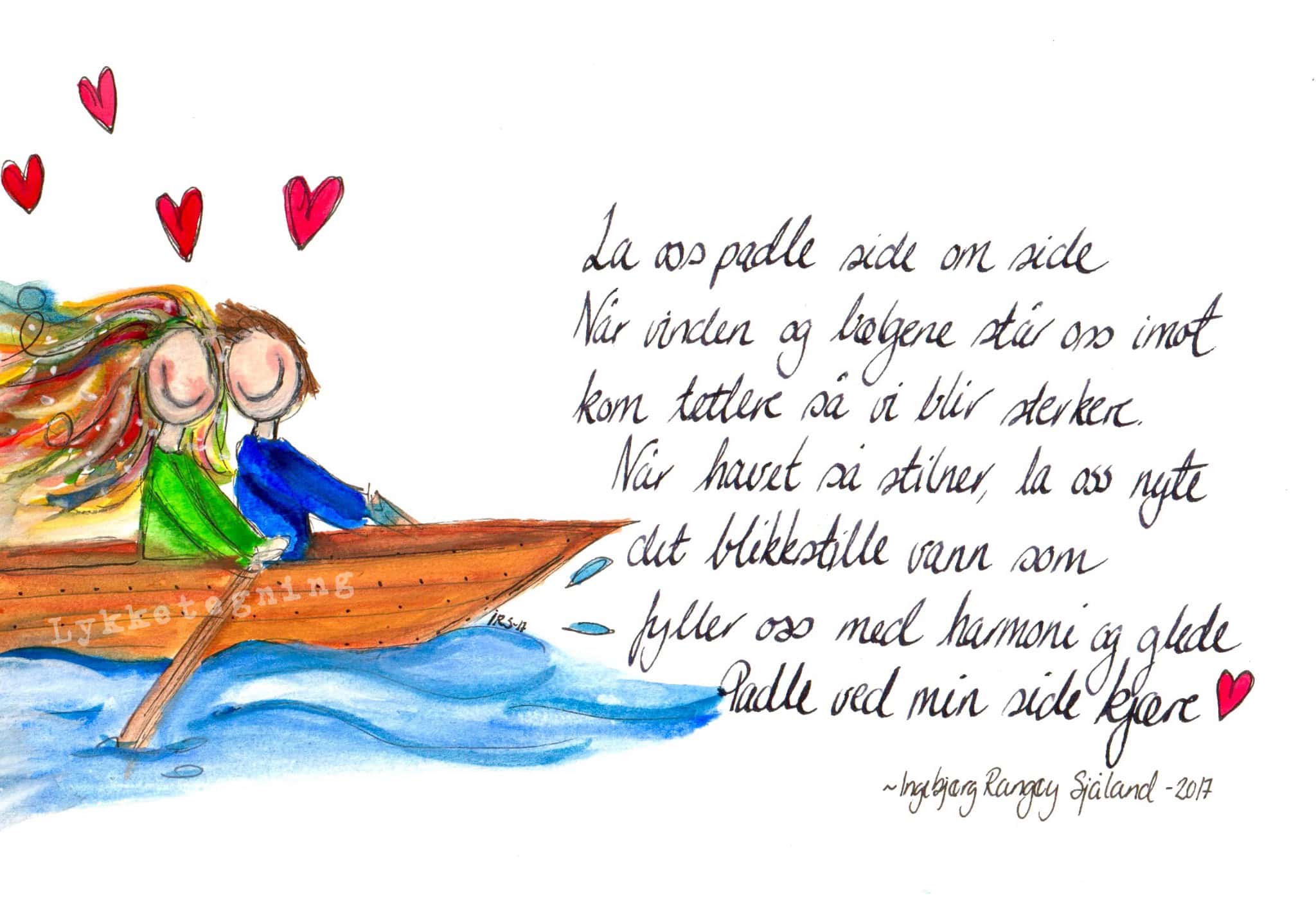Å være to er ikke alltid lett når hverdagen omsluker enn. I sommer er det ett par som får dette diktet på sin bryllupsdag, håper det kan være til glede i både gode og ikke fullt så fantastiske dager! 🙂 “Padle ved min side” kjære av Ingebjørg Rangøy Sjåland “La oss padle…