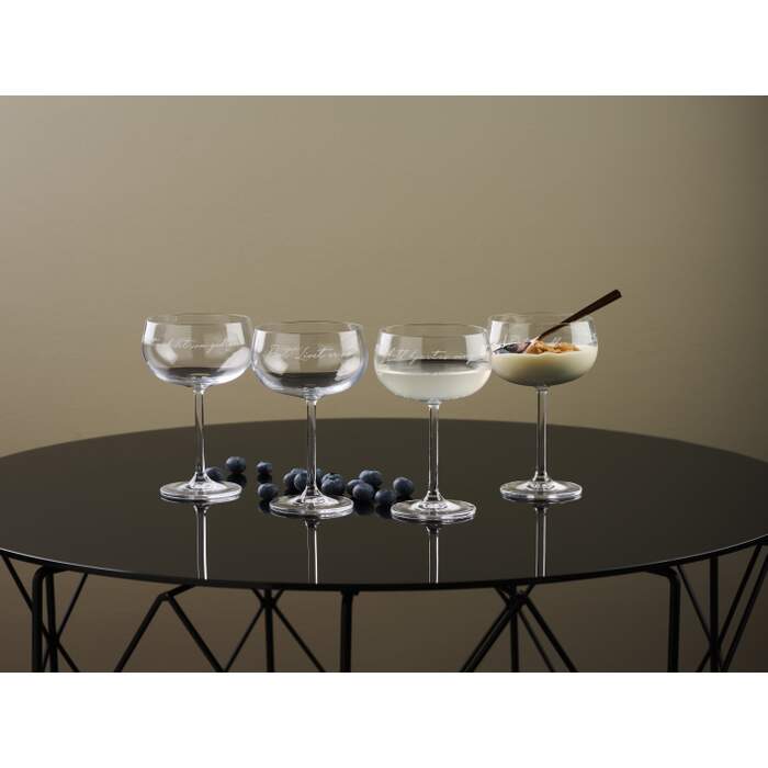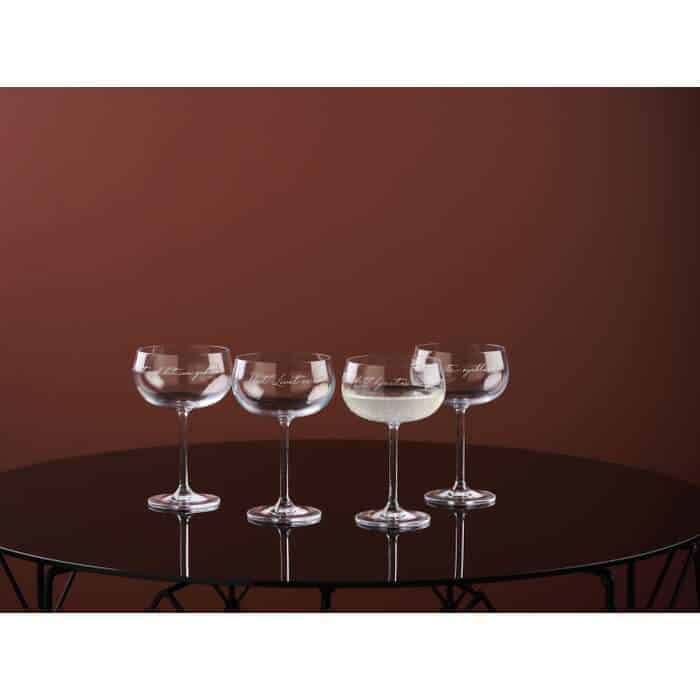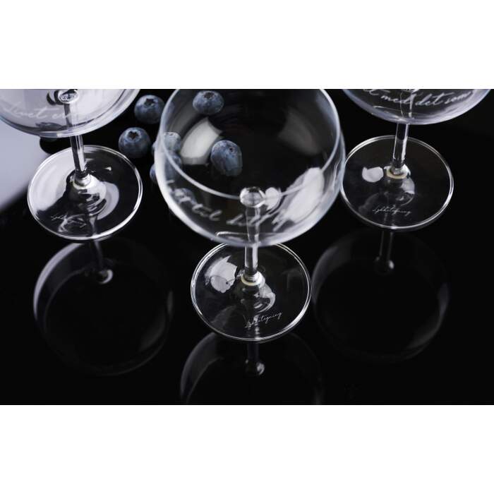 Champagnebeger med lekker utforming og gravering. “Pust! Livet er nå” Glassene er perfekt til sprudlende viner, men også lekre å servere en frisk juice, cocktail eller nydelige desserter. Med klare linjer og gode sitater ønsker Lykketegning å få deg til å stoppe litt opp, trekke pusten godt og deretter sette en god kurs videre.