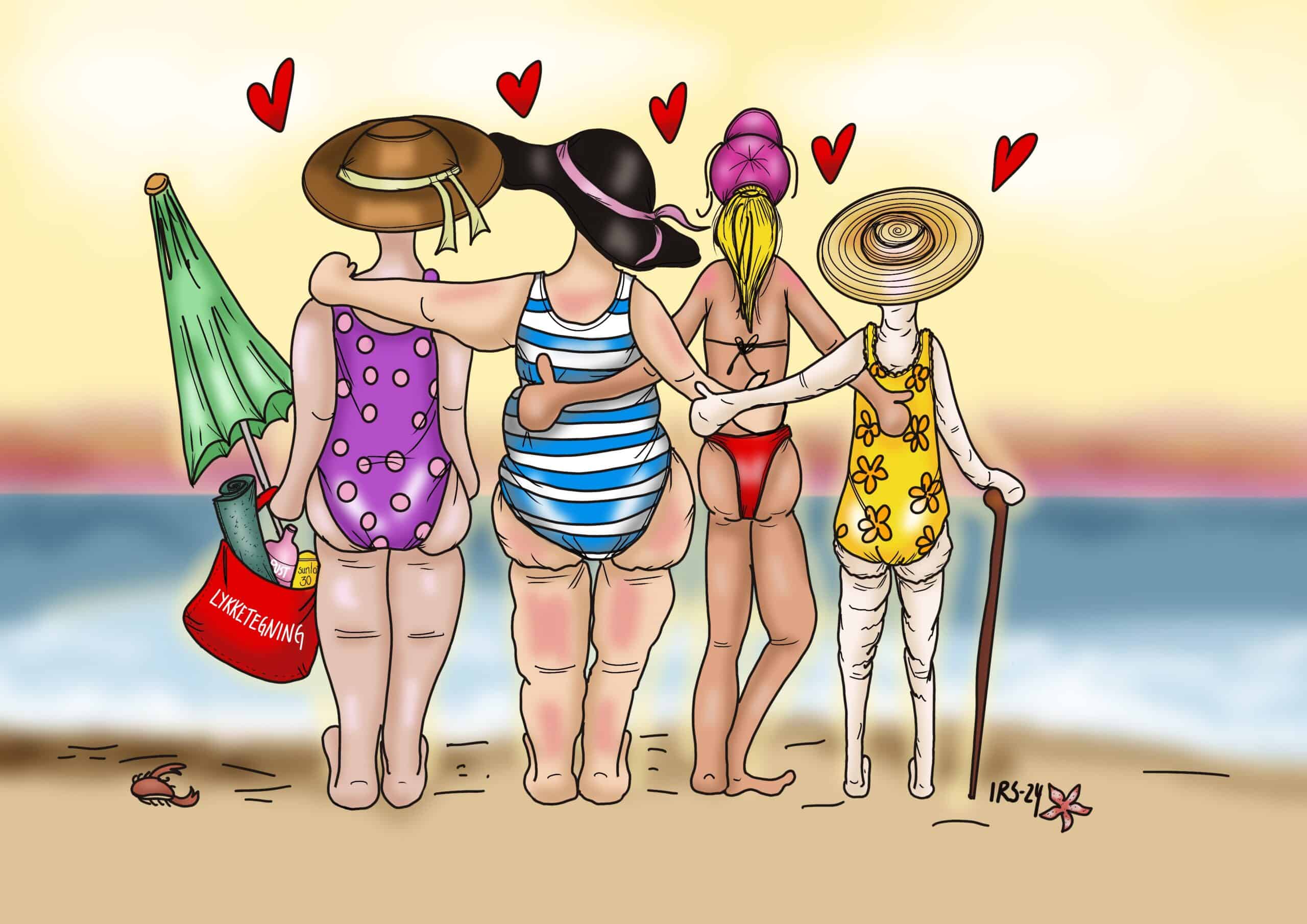Illustrasjon fra Lykketegning. “Beachgirls”