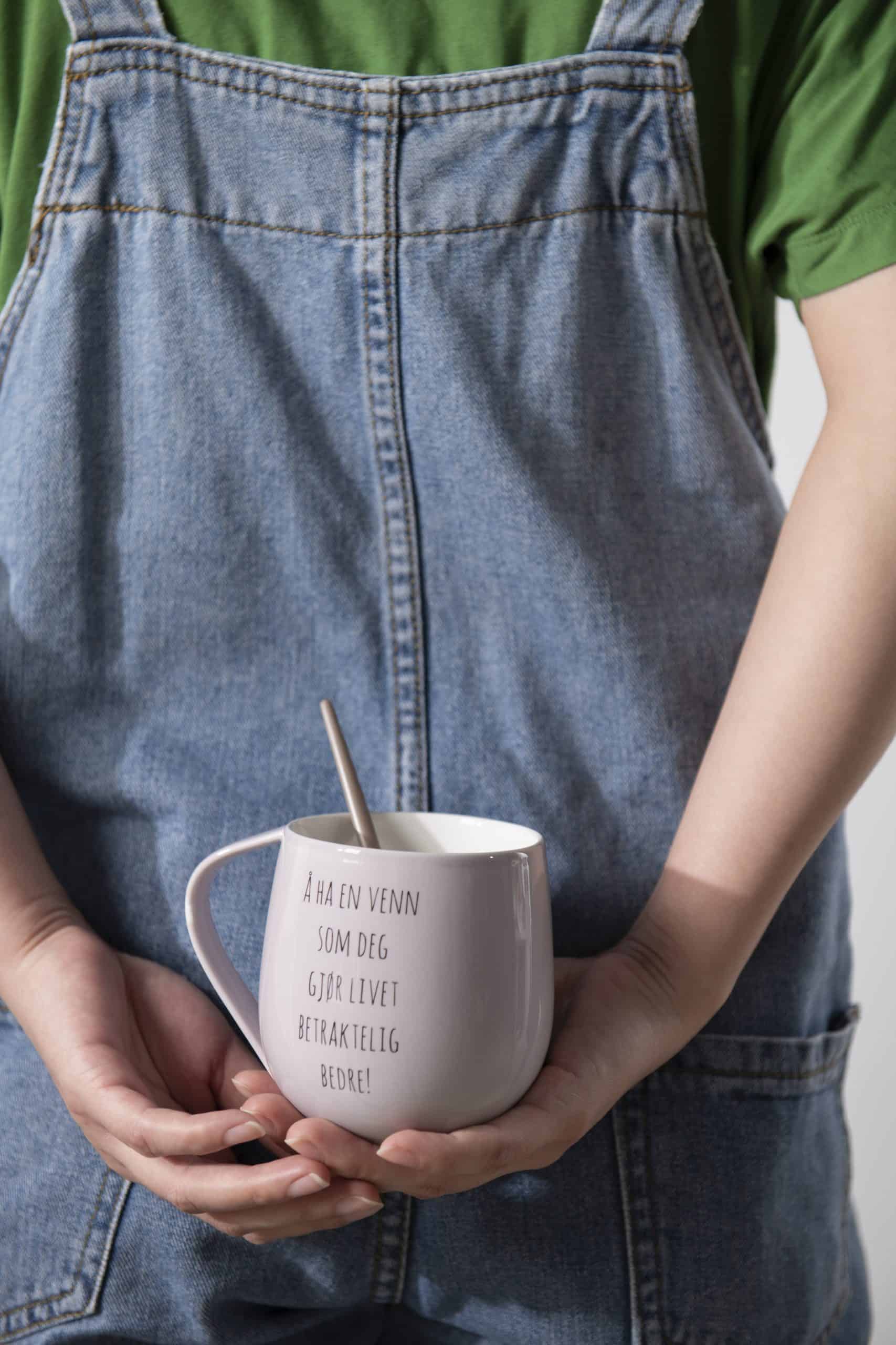 Det nye kruset “Venn” er nydelig å drikke av. Bestill nå og få ditt eget Lykkekrus! Flott venninnegave eller til deg selv!