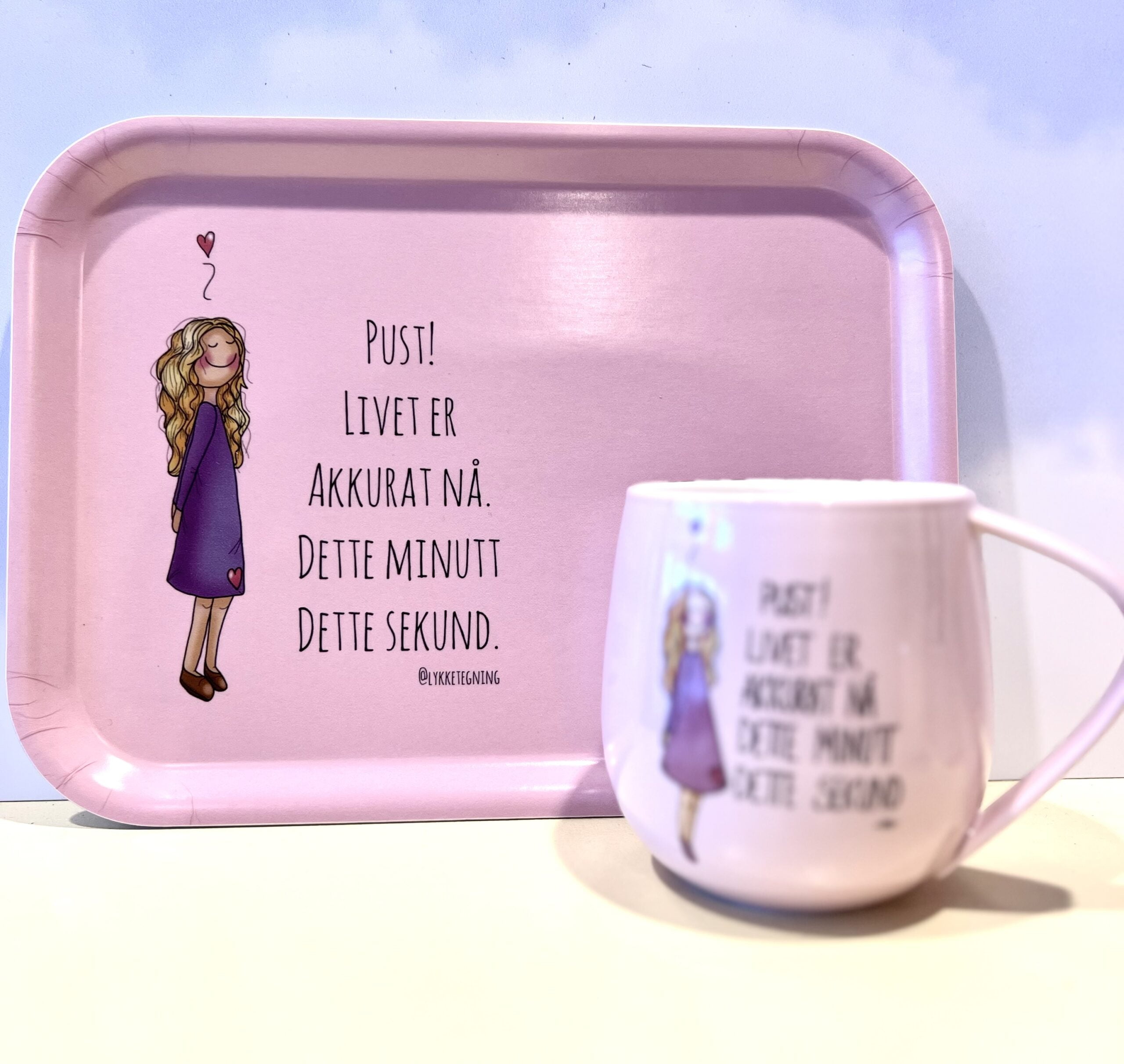 Helt nytt produkt! Kun 30 stk i første omgang! Serveringsfat fra Lykketegning med det populære sitatet; “Pust! Livet er akkurat nå, dette minutt, dette sekund”
