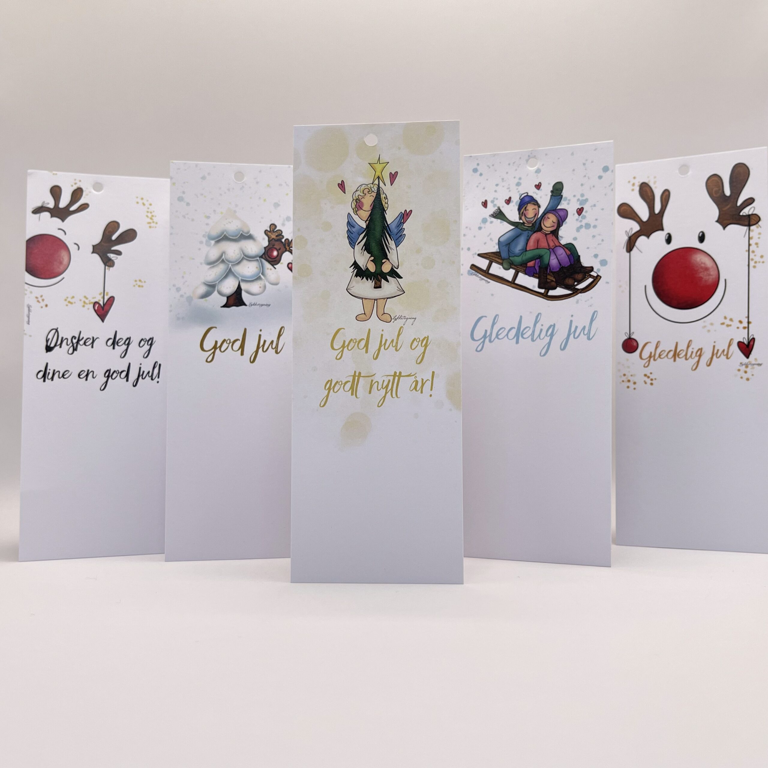 I år har vi laget helt nye pakkelapper som gjør det lille ekstra til innpakningen. Lappene er avlange og med plass til å skrive på slik at du kan gi din personlige julehilsen på de. Ferdig hullet og kommer i pakning på 5 ulike kort.