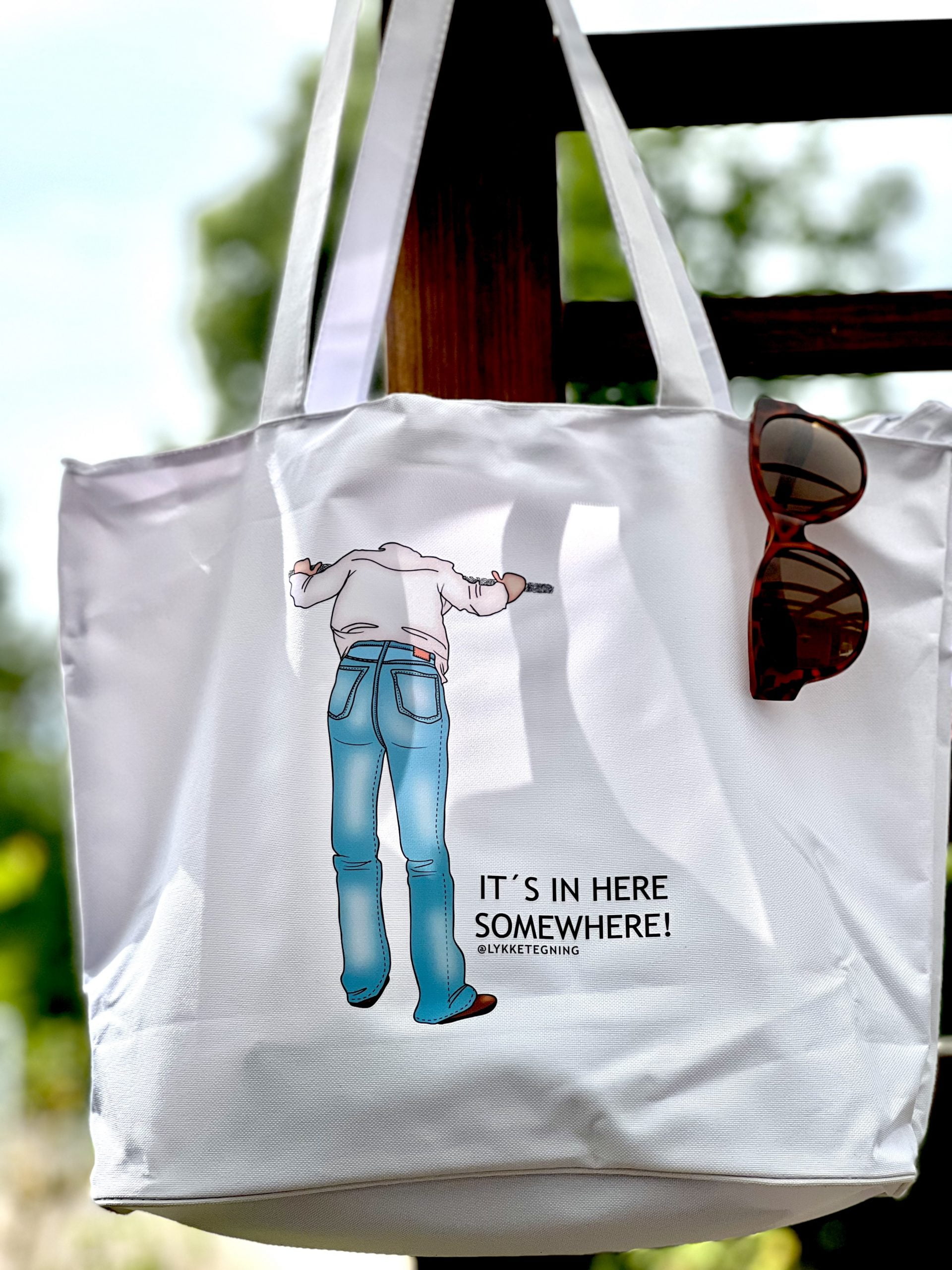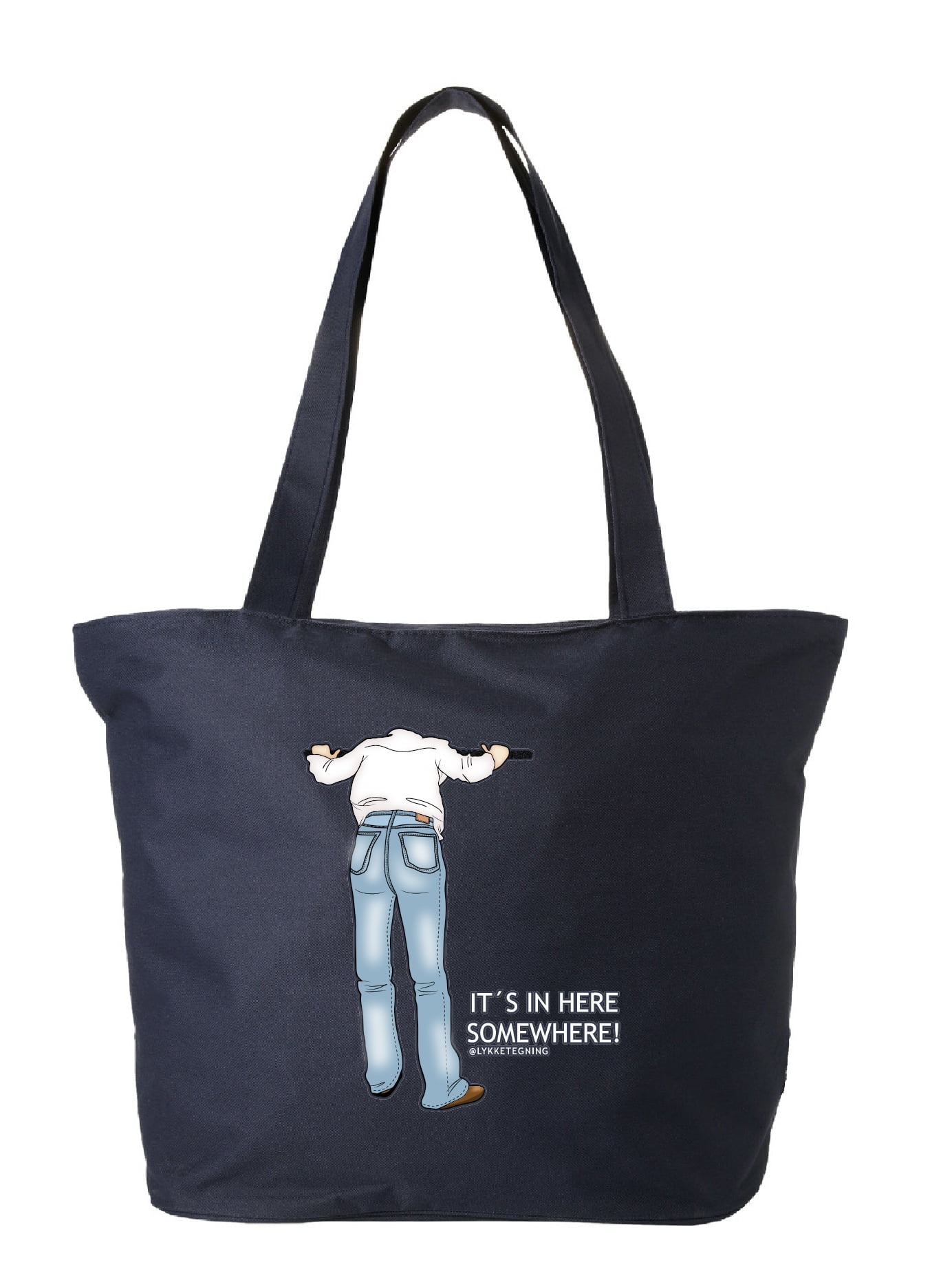 Passende veske til enhver dame/mann -“It´s in here somewhere” Hvit/blå