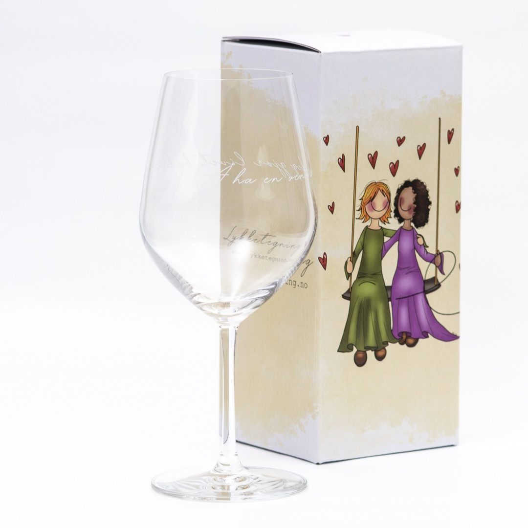 Vinglass med lekker utforming og gravering. “Å ha en venn som deg gjør livet bedre”