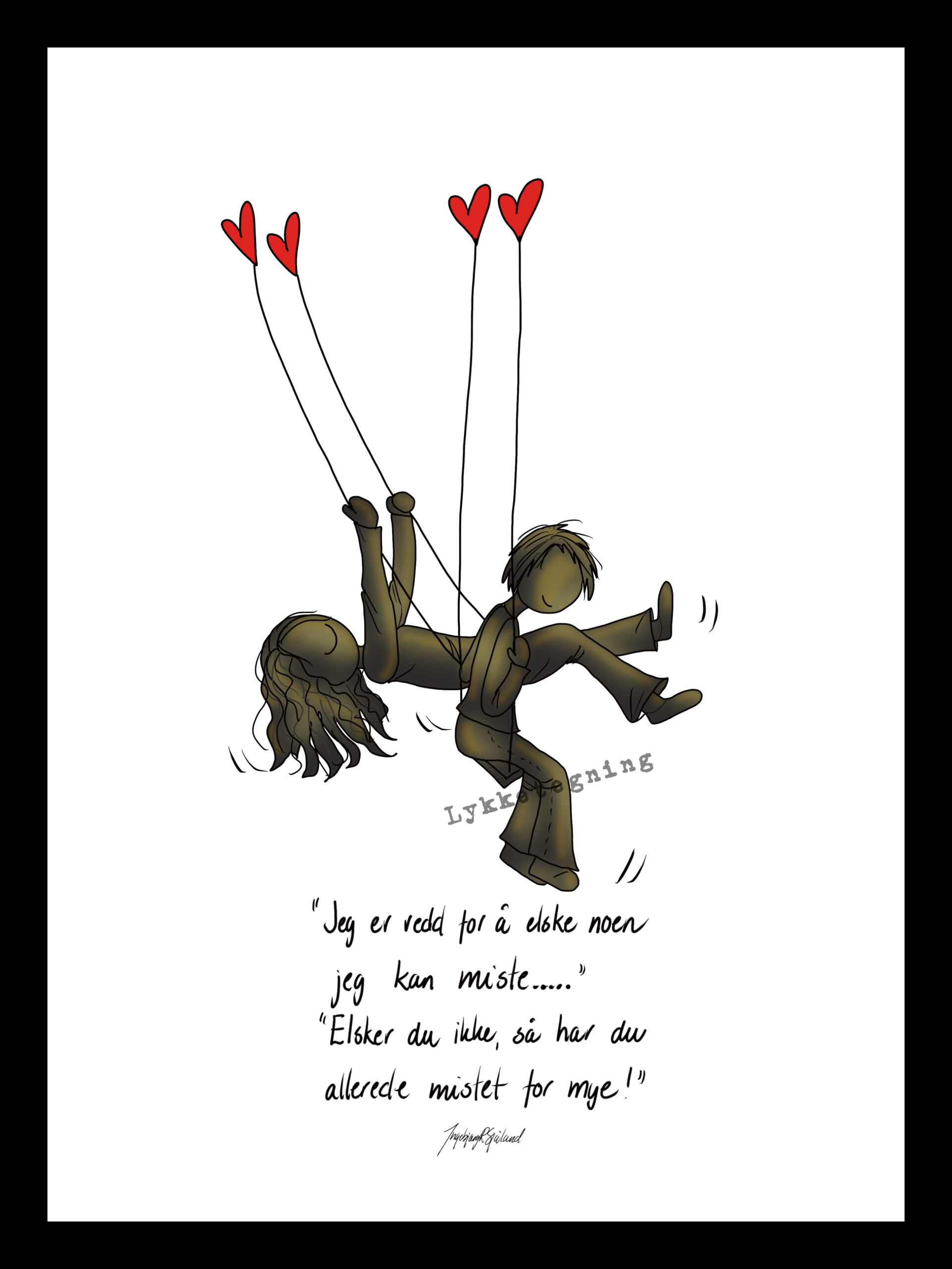Illustrasjon fra Lykketegning. “Redd for å elske”